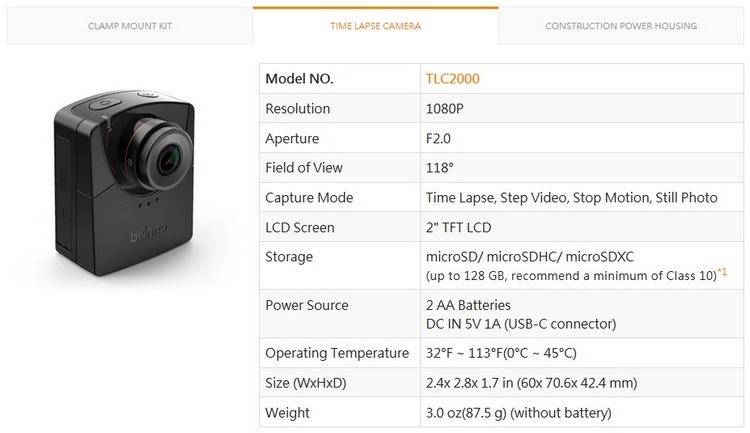 • Stavebnice Brinno BCC2000: kamera TLC2000 se záznamem 1080p a HDR, pouzdro ATH2000 se standardem odolnosti IPX5 a nový magický držák ACC1000.