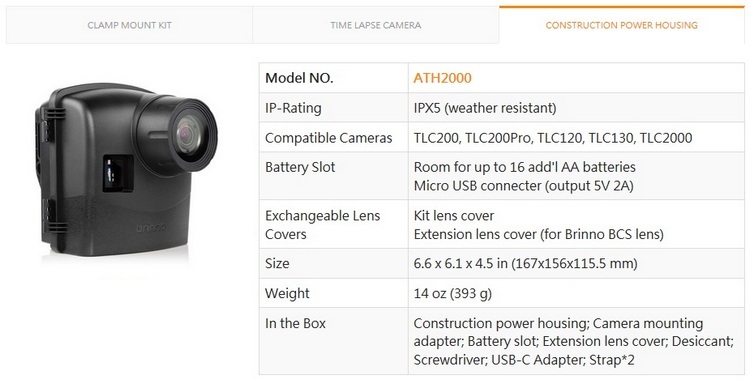ATH2000 jest kompatybilna z wymiennymi obiektywami Brinno z serii BCS i montażem typu CS. Również kamera TLC2000 umożliwia dodatkowy montaż obiektywu w celu uzyskania jeszcze lepszej jakości obrazu.