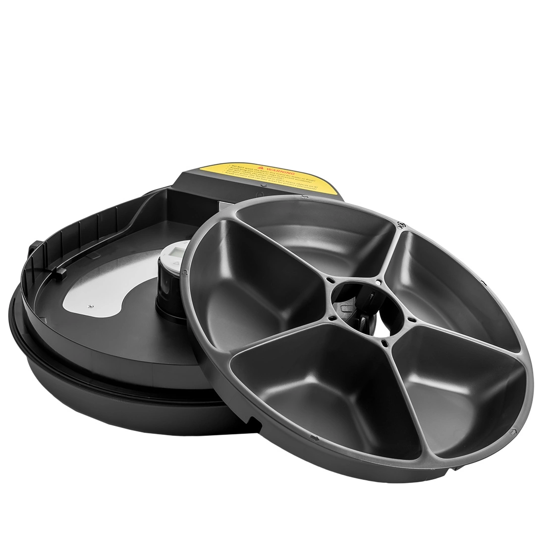 - Automatyczne karmienie: Do 5 posiłków dziennie z osobnymi komorami o pojemności 330 ml każda.