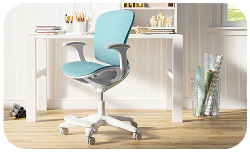 Zastosowanie oddychającej siatki na oparciu i siedzisku zapewnia dodatkową cyrkulację powietrza, maksymalizując komfort użytkowania fotela do biurka dla dziecka.