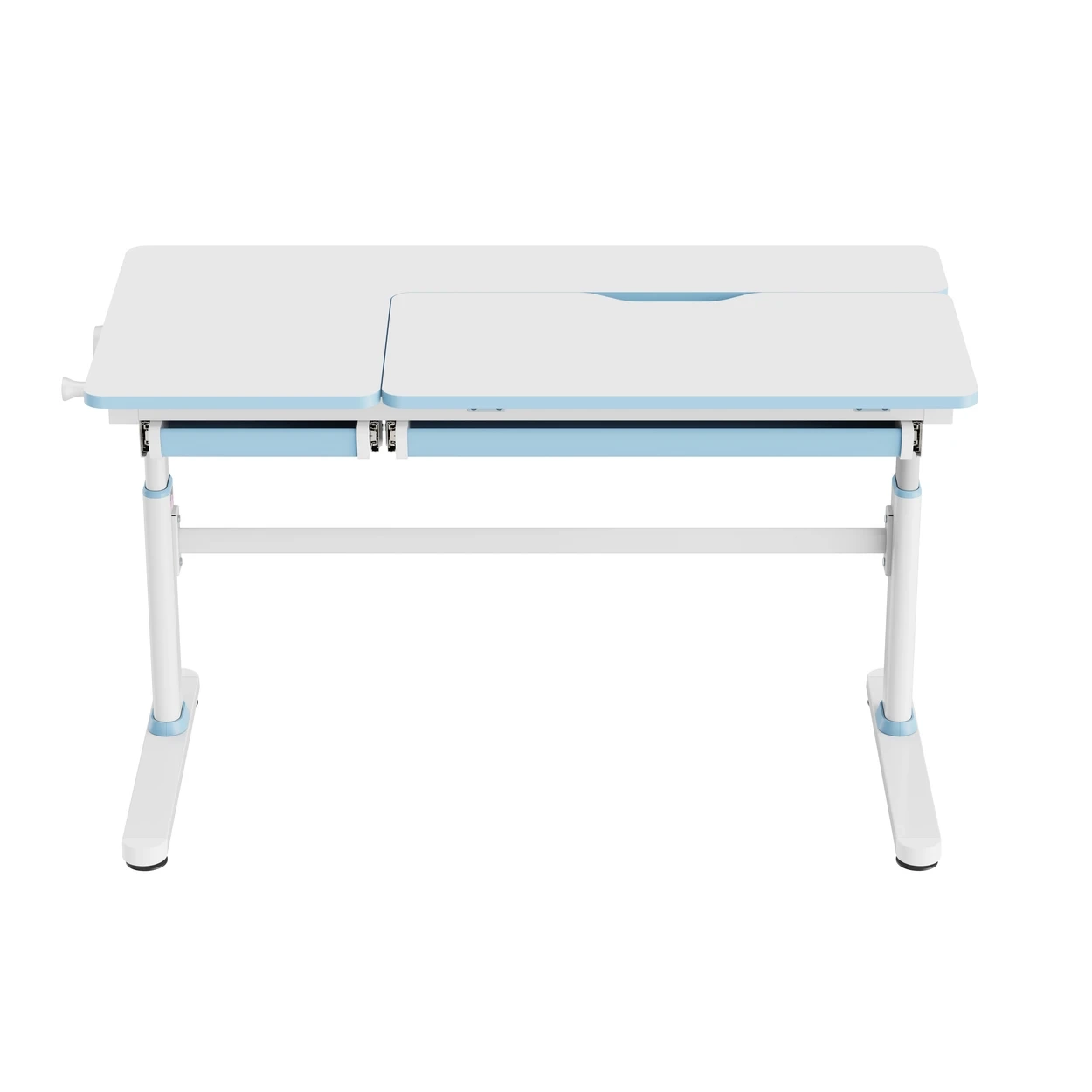 • Nastavitelný dětský psací stůl, který roste s vaším dítětem. Nastavte si správnou výšku desky podle výšky vašeho dítěte od 54 cm do 76 cm. Horní deska 120 x 60 cm. Bílá, modrá barva. Háček na batoh. Otočná horní deska. Dvě zásuvky.