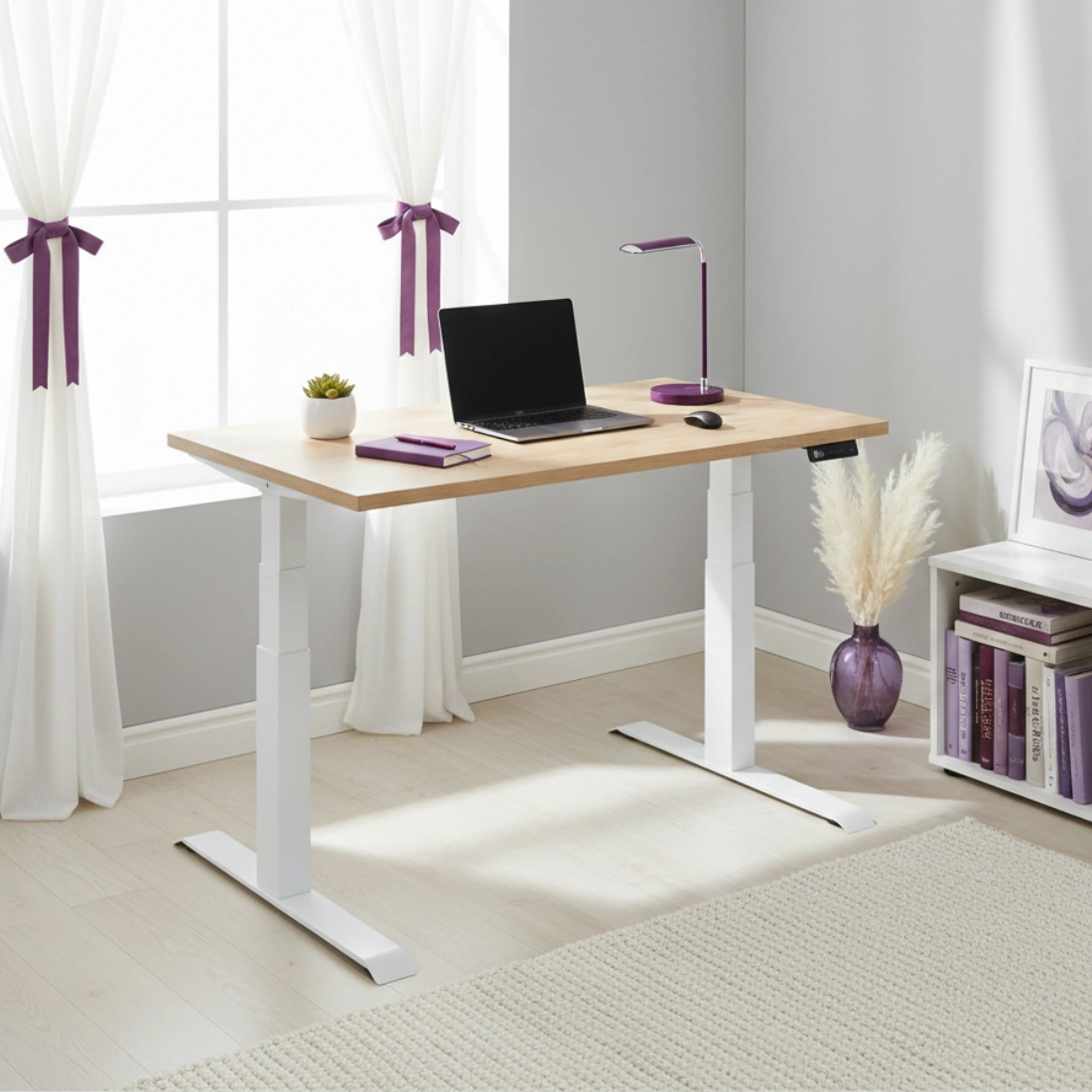 Dzięki wykorzystaniu 3 segmentów podnoszących stelaż, jest on stabilny i pozwala podnosić biurko na wysokość aż 127cm. Dzięki temu można pracować komfortowo zarówno w pozycji stojącej jak i siedzącej. Stelaż posiada prostokątny kształty kolumn, przez co sprawdzi się w każdych wnętrzach, również w tych nowoczesnych.