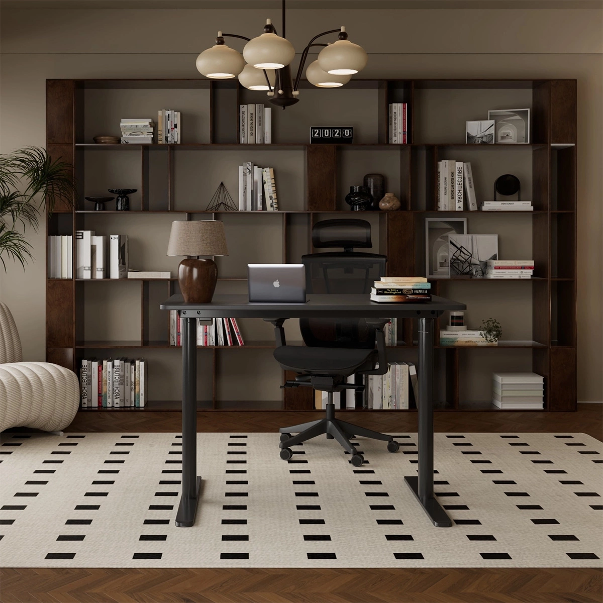 - Snadno ovladatelný panel: Dvoutlačítkový ovládací panel umožňuje intuitivní a pohodlné nastavení výšky stolu.