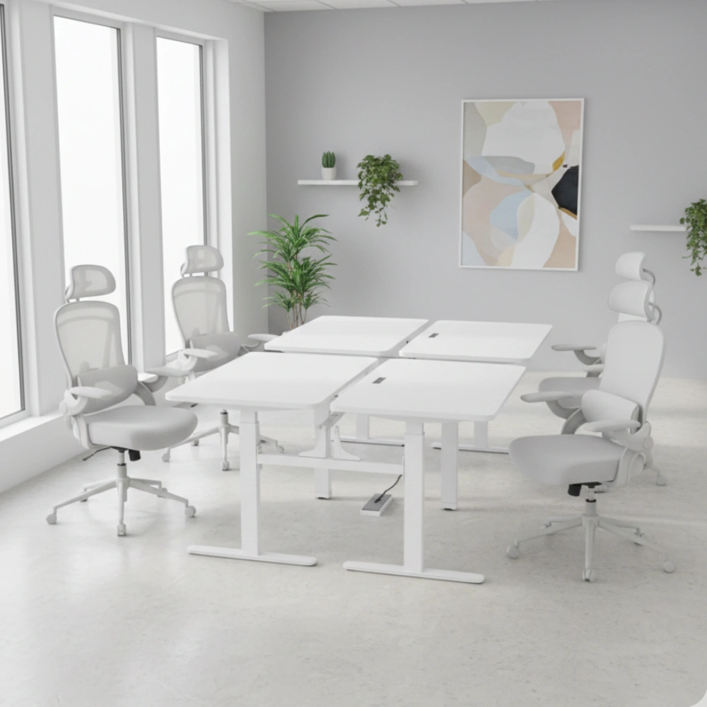 • Elektricky nastavitelný stojan pro stůl Spacetronik SPE-440W. Je vybaven až 4 motory, které zajišťují nosnost až 200 kilogramů. S jeho pomocí můžete vytvořit dva individuálně nastavitelné stoly. maximální rychlost 38 mm/s, bílá barva.