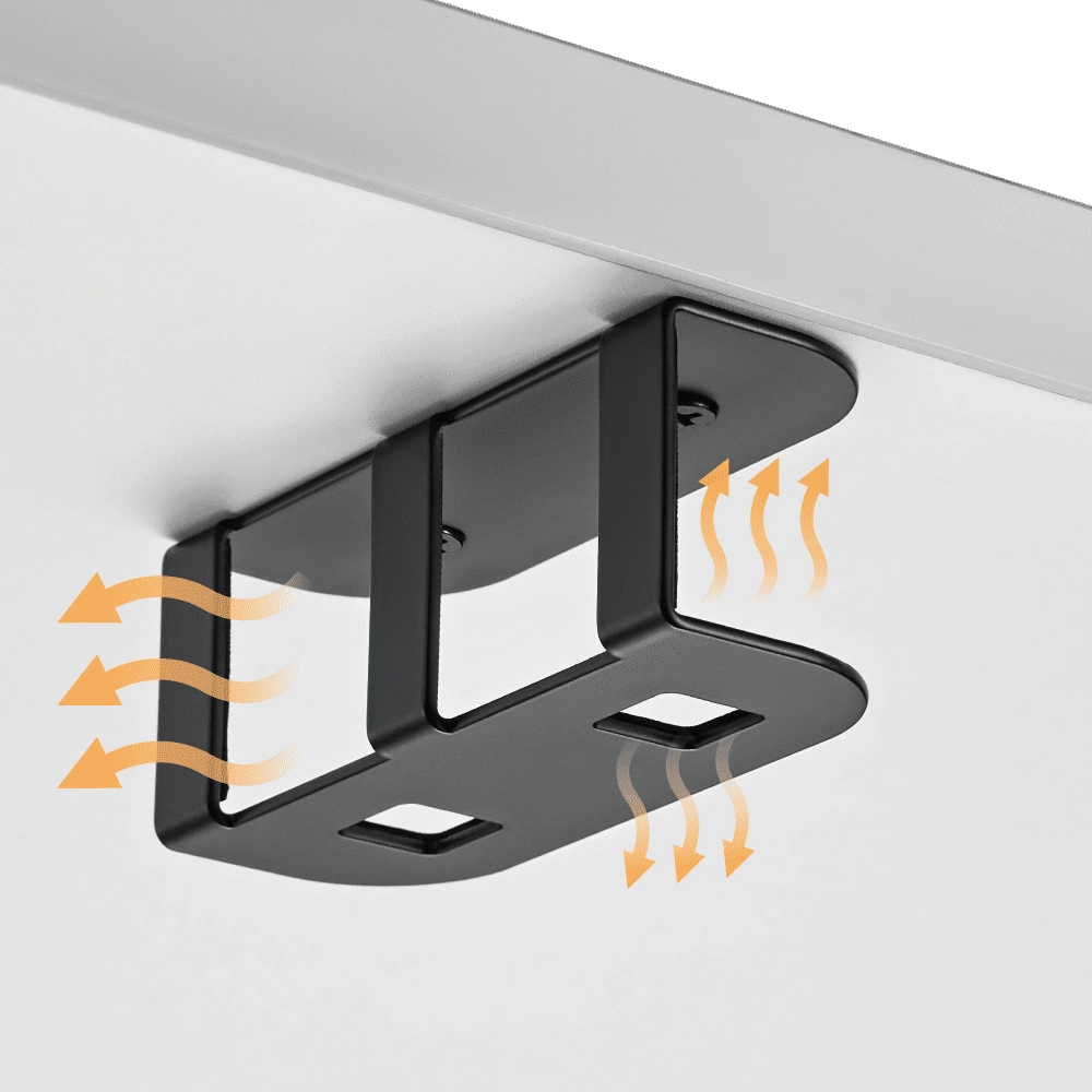 Závěsný držák na notebook je inovativní řešení navržené tak, aby maximalizovalo efektivitu a organizaci vašeho pracovního prostoru. Držák byl speciálně navržen tak, aby bezpečně držel notebooky pod deskou stolu nebo pracovní plochou, nepřekážel v prostoru, ale byl stále snadno přístupný. Nastavitelné držáky se přizpůsobí široké škále velikostí notebooků nebo tabletů. Bezpečná rukojeť na zadní straně zabraňuje sklouznutí zařízení a udržuje jej na místě. Protiskluzové podložky zabraňují sklouznutí notebooku a udržují jej na místě. Otevřená konstrukce zajišťuje lepší větrání a snadnější přístup ke kabelům. Instalace je navíc velmi snadná!