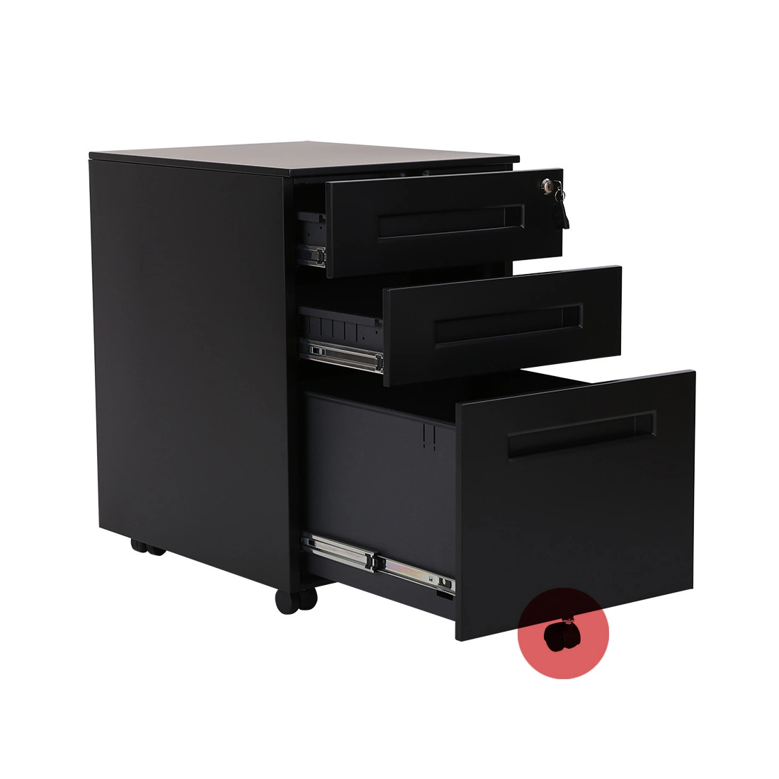 Schludna, dobrze zorganizowana przestrzeń w biurze to absolutna konieczność. Mobilny kontenerek pod biurko to idealne rozwiązanie do przechowywania dokumentów i artykułów biurowych. Wszystko, co potrzebujesz, masz pod ręką. Idealnie nadaje się zarówno do domowego biura, jak i firmy. Szafka jest wykonana z najwyższej stali malowanej proszkowo, co przekłada się na wyjątkową wytrzymałość i stabilność - rozwiązanie na lata. Prosty, nowoczesny design sprawia, że szafka doskonale pasuje do każdego wnętrza. Centralny zamek to gwarancja bezpieczeństwa. Przechowuj dokumenty i wartościowe przedmioty w jednej z zamkniętych szuflad. Dzięki zintegrowanym kółkom można ją w łatwy sposób przemieszczać. Szafka jest prawie gotowa do użycia, wystarczy, że zamonutujesz kółka (nie potrzebujesz do tego żadnych narzędzi).