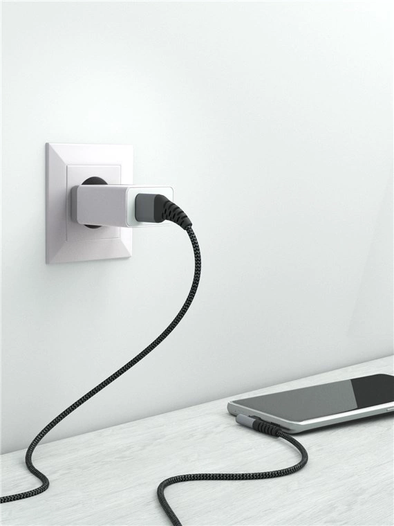 - Díky svému úhlu zástrčka těsně přiléhá k zařízení a účinně tak zabraňuje zlomení kabelu - zejména při současném používání a nabíjení zařízení;