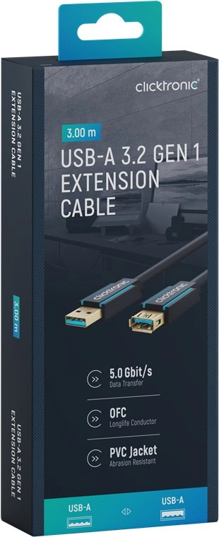 CLICKTRONIC kabel przedłużacz USB 3.0 Premium