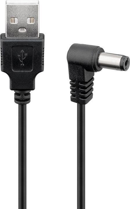 Kabel USB - wtyk DC 5,5x2,5mm. Do zasilania urządzeń z gniazdem DC. Prąd 5V, maksymalnie 1A.