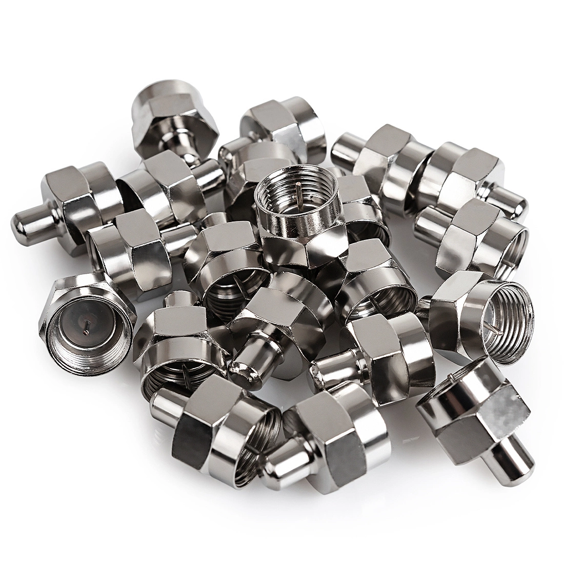 Zakončovací rezistor Spacetronik F 75 Ohm TV-FR01 je vyroben z galvanicky pokovené mosazi.