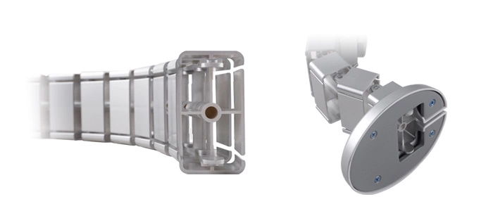 Atrakcyjny i praktyczny sposób na utrzymanie porządku w okablowaniu. Kręgosłup prowadzi kable od podłogi do biurka i zapewnia ochronę przed potencjalnymi uszkodzeniami mechanicznymi. Odpowiednia wielkość bloków pozwoli pomieścić ponadprzeciętne ilości kabli.
