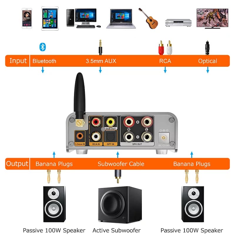 Lavaudio DS300 to wzmacniacz audio który został wyposażony w Bluetooth 5.0 który gwarantuje najwyższej jakości sygnał audio podczas przesyłania muzyki do głośników lub systemu audio