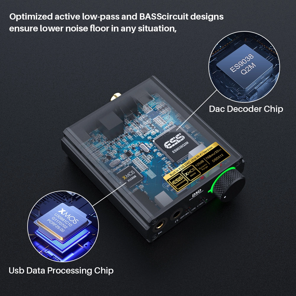 ?Wysokowydajny układ dekodujący dac i usb?: Wyposażony w potężny i sprawdzony układ ESS ES9038Q2M i XU208, wzmacniacze słuchawkowe DS400 są w stanie dekodować do 768 kHz/32 bity i DSD64-DSD512, jego pamięć jest dwa razy wyższa niż U8, i jego prędkość obliczeniowa sięga przerażającego 1000 MIPS, czyli dwa razy szybciej niż 500 MIPS w U8. Podwójne oscylatory kryształowe DS400 zapewniają, że wszelkie cyfrowe sygnały audio przesyłane do przetwornika cyfrowo-analogowego są dokładnie poprawne, co zapewnia dalszą poprawę jakości dźwięku.