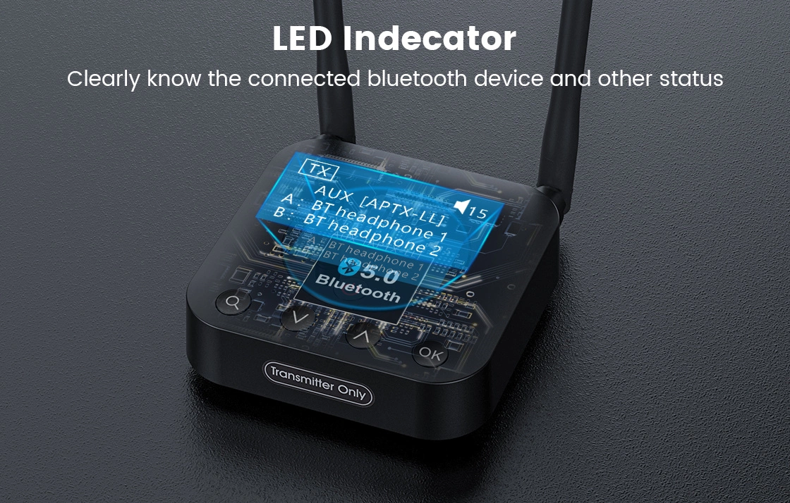 Super łatwe parowanie z wyświetlaczem 1Mii B06TX plus nadajnik Bluetooth został zaprojektowany z bardzo ładnym ekranem. Wyraźne i czytelne podczas pracy, możesz łatwo wybrać odpowiednie słuchawki Bluetooth.