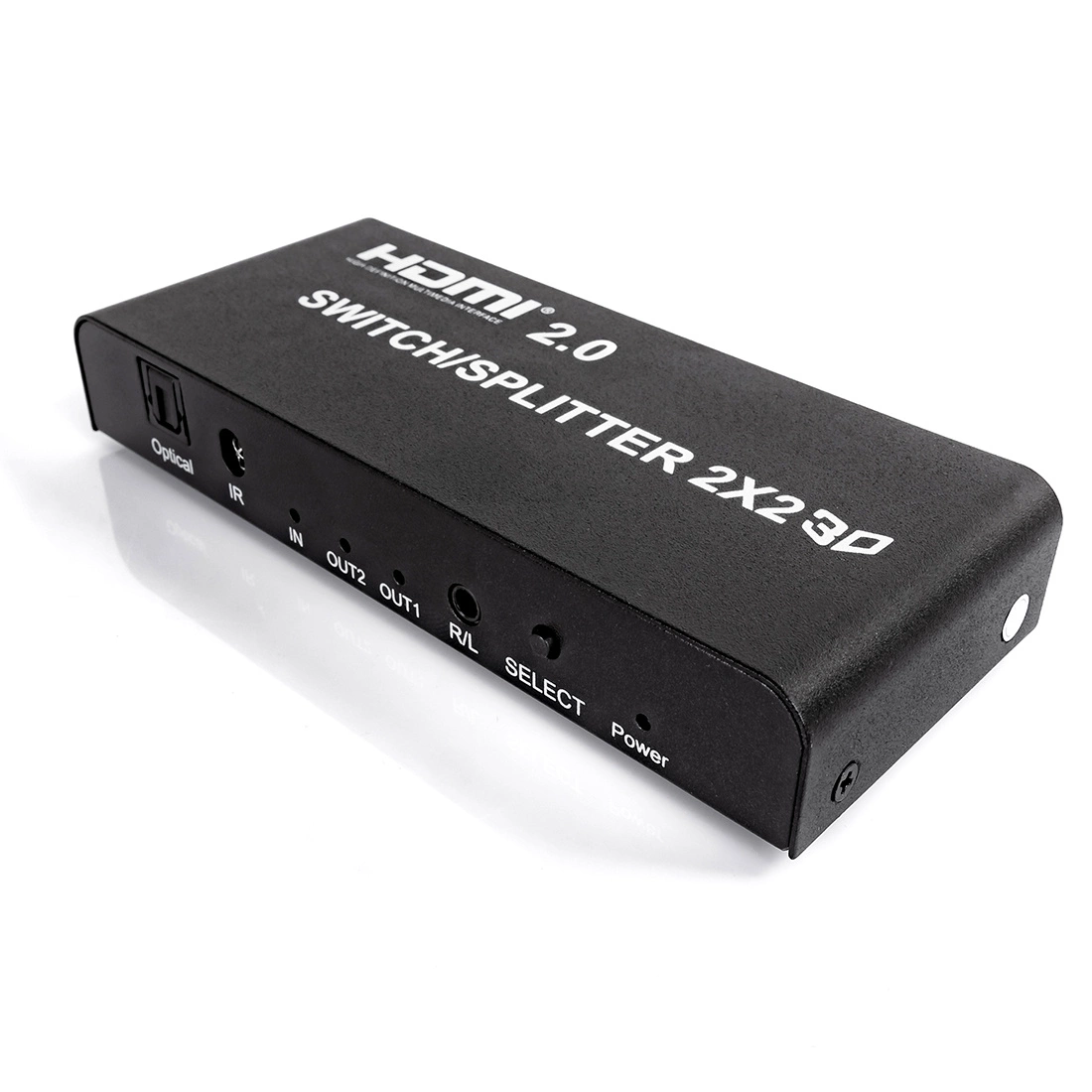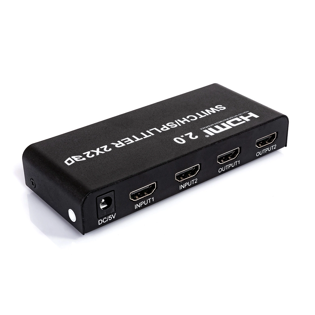 Matrix HDMI 2x2 może łączyć 2 źródła sygnału HD z 2 wyświetlaczami HD, dodatkowo urządzenie posiada wyjście toslink lub słuchawek stereo. Matrix umożliwia łatwe przełączanie lub podział dwóch urządzeń HDMI na dwa monitory lub projektory zgodne z HDMI. Porty wyjściowe mogą realizować niezależne wyjście audio przez stereofoniczny zestaw słuchawkowy. Urządzenie idealnie sprawdza się w zakresie kontroli centrum danych, dystrybucji informacji, prezentacji na sali konferencyjnej, środowisk szkolnych i szkoleniowych.