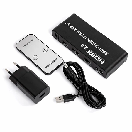 - 2 wejścia HDMI przełączają się i dzielą na 2 wyświetlacze HDMI.