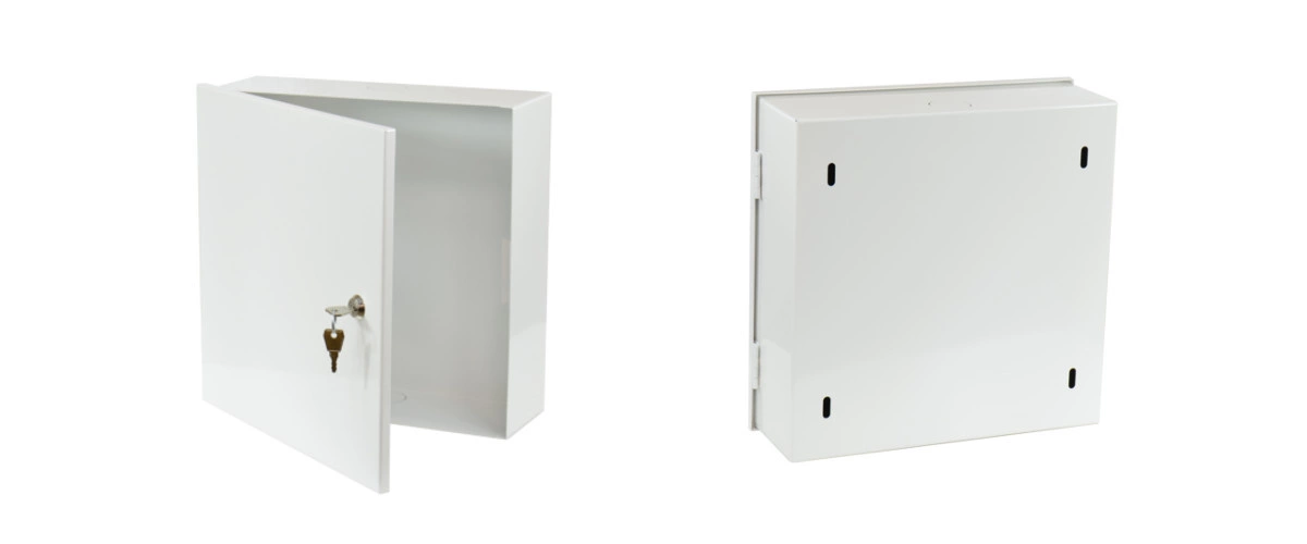 • Povrchová skříň pro systémy SMATV: multipřepínače, zesilovače a systémy pro přístup k internetu, s kovovou zadní stranou, nikoli s překližkou.