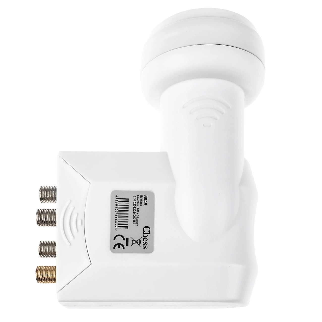 Profesjonalny jednoprzewodowy konwerter LNB Chess dla maksymalnie 6 odbiorników (4 odbiorniki kompatybilne z SCR i 3 konwencjonalnymi odbiornikami satelitarnymi przez 3 starsze wyjścia Legacy)