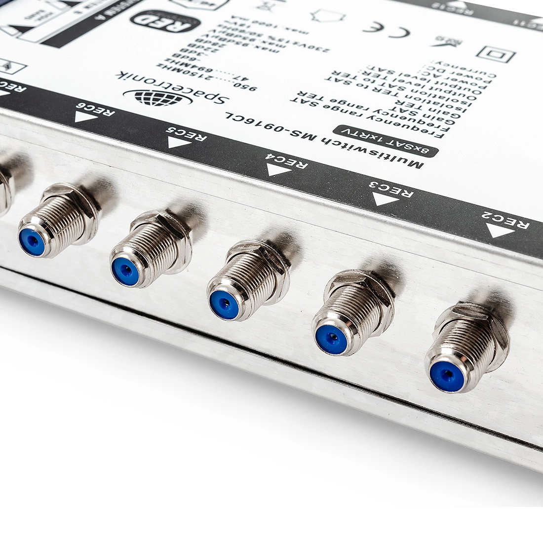 • Kaskádový multipřepínač Spacetronik 9/9 po 16 MS-0916CL pro připojení dvou satelitů a digitálního pozemního televizního signálu a jejich odeslání do 16 přijímačů. Dodává se s napájecím zdrojem.
