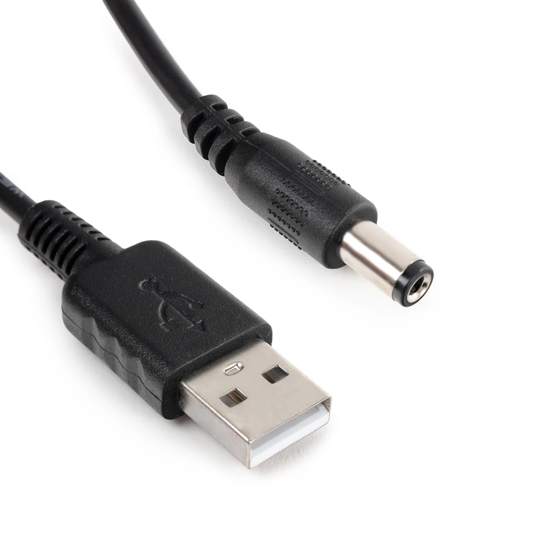 Kabel USB - wtyk DC 2.1/5.5mm. Do zasilania urządzeń z gniazdem DC. Prąd 5V, maksymalnie 1A.