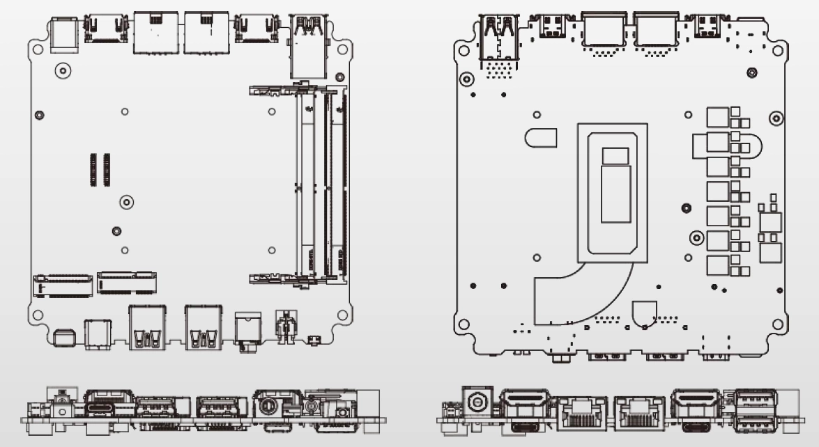 Navzdory svým malým rozměrům je počítač Minisforum NPB7 vysoce univerzální zařízení. To vše díky množství různých portů umístěných v přední i zadní části zařízení. Vpředu najdete: