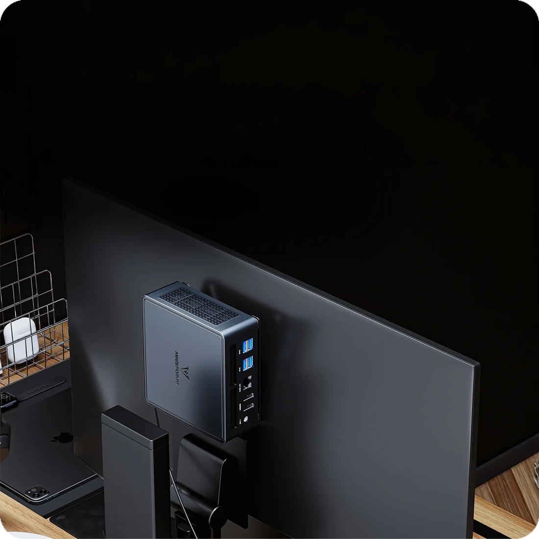 Počítač Minisforum UM790 PRO má kompaktní rozměry (13 × 12,6 × 5,2 cm). Navíc je díky své nízké hmotnosti pouhých 666 g ideální na cesty. Snadno se vám vejde do kufru. A co víc, vejde se vám i do příručního zavazadla v podobě batohu nebo kabelky. Díky tomu se také přenáší snadněji a pohodlněji než notebook. Po příjezdu na místo určení jej stačí připojit k nějaké obrazovce/televizoru a připojit k němu podložku nebo klávesnici. To je vše, co potřebujete, abyste si mohli užívat nerušené hraní! Nezáleží na tom, kde se právě nacházíte.