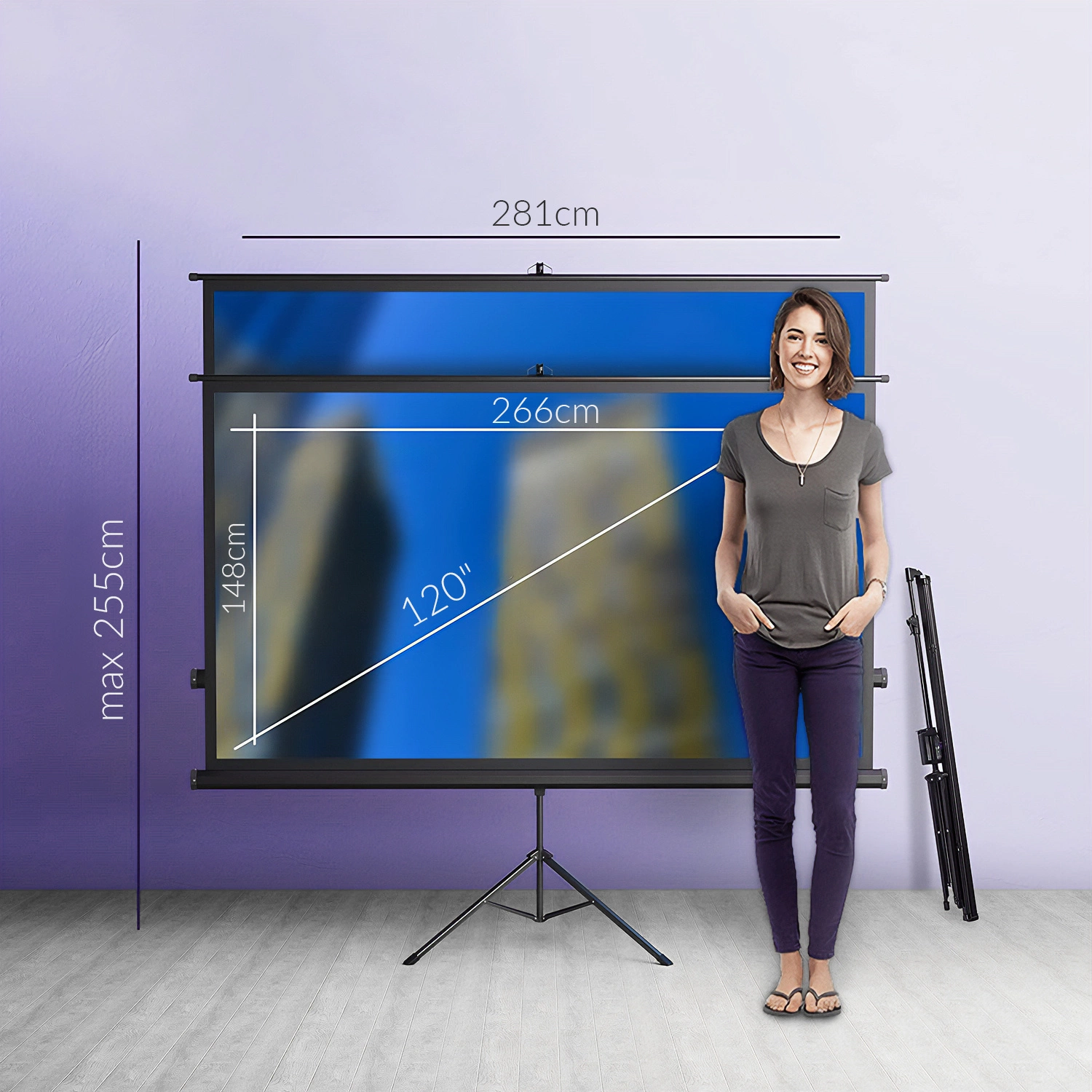 S naším projekčním plátnem Spacetronik se nemusíte obávat o stabilitu. Díky robustnímu stativu je plátno stabilní a jeho používání bezpečné. Můžete jej také připevnit na zeď.
