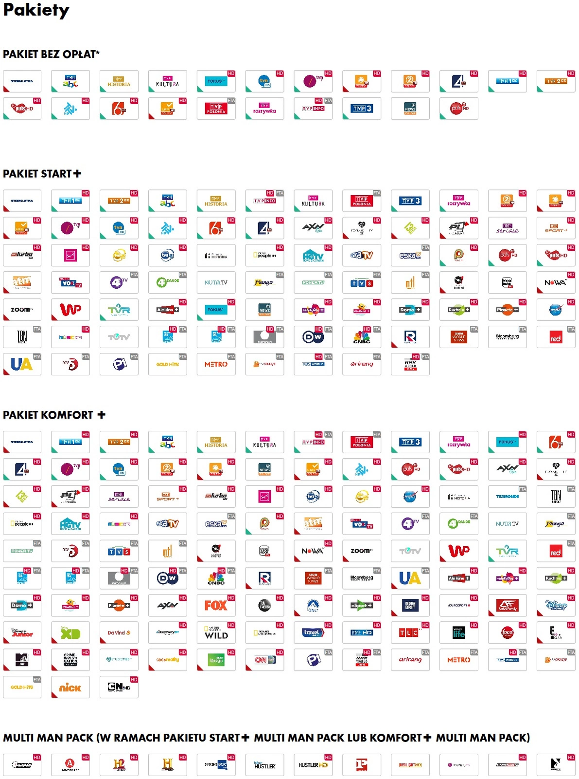 - 3 miesiąc na start - oferta 83 kanałów, w tym 44 w jakości HD- Dekoder HD na własność