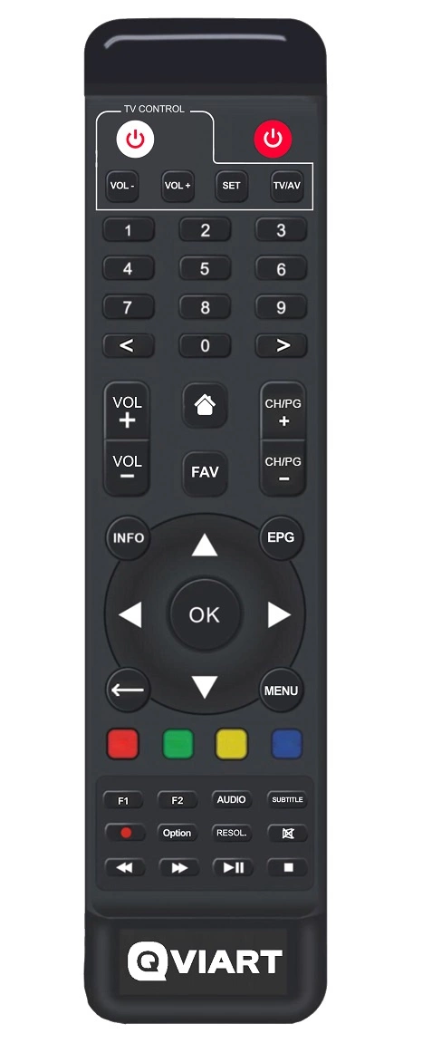 Qviart OG2s 4K má pozoruhodný dálkový ovladač RCU s možností učení, který si pamatuje funkce z dálkového ovladače televizoru.Podpora UHD 4K H.265