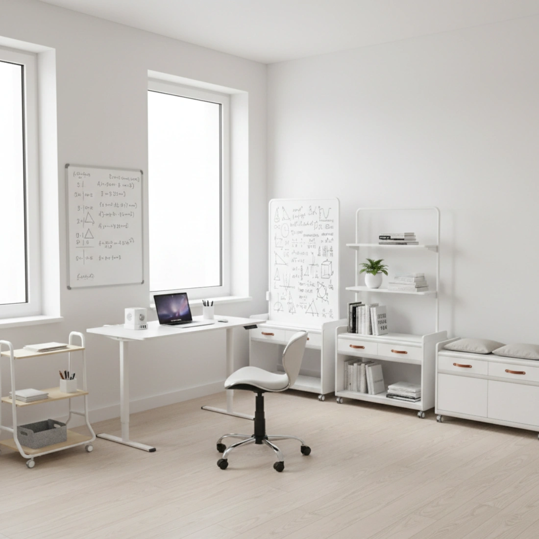 Mobile Dual-Motor Sit-Stand Desk Shelf Drawers (1 ks.)