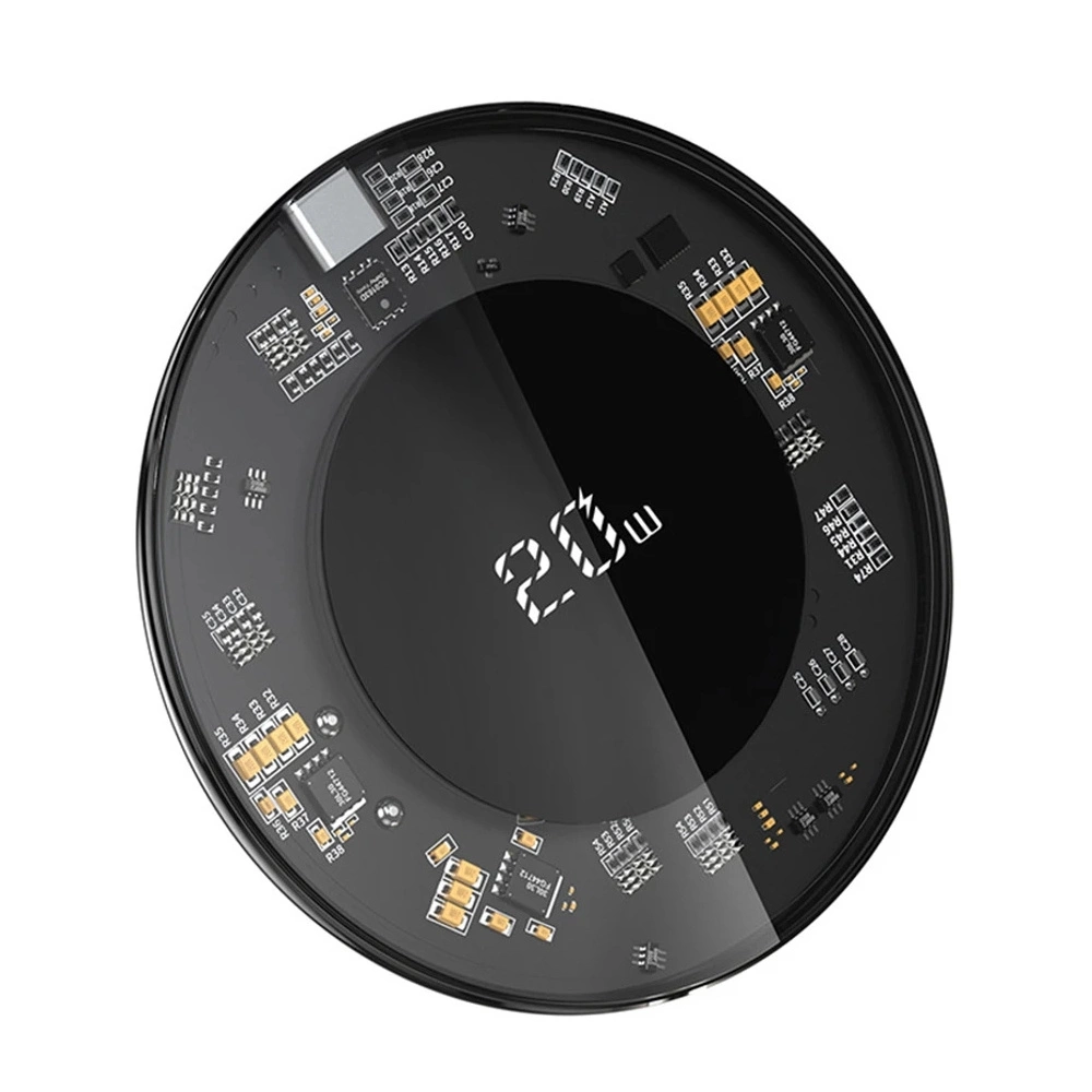 Seznamte se s 20W indukční bezdrátovou nabíječkou, která kombinuje rychlost s elegancí! Její jedinečné průhledné tělo vám umožní obdivovat pokročilé komponenty zařízení a její ultratenký design o tloušťce pouhých 7,3 mm dokonale zapadá do moderního designu. Podporuje protokoly QC a PD a poskytuje rychlé a účinné nabíjení, takže vaše zařízení bude vždy připraveno k použití. Nabíječka je nejen praktická, ale také stylová, ideální pro stolní nebo domácí použití.