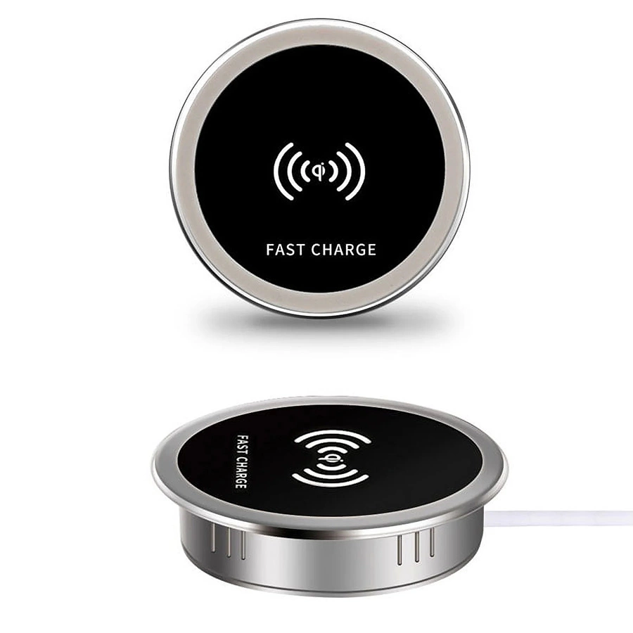 Bezprzewodowa ładowarka indukcyjna Spacetronik SPM-03 montowana w blat stołu z szybkim ładowaniem 15W, wodoodporna, idealna do biura i domu, elegancka ładowarka do telefonu z funkcją ładowania indukcyjnego.