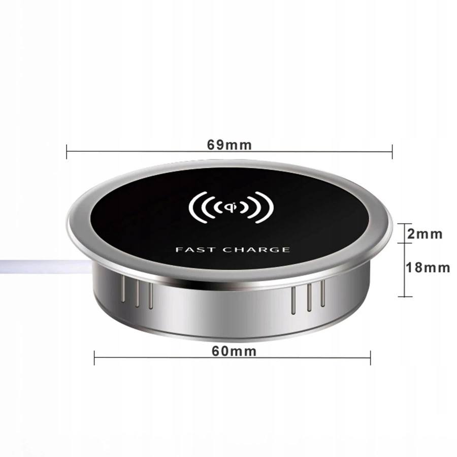 • Bezdrátová indukční nabíječka Spacetronik SPM-03 je moderní a odolné řešení pro nabíjení zařízení. Montuje se do desky stolu a nabízí rychlé 15W nabíjení, vodotěsnost a snadnou instalaci do otvorů o průměru 60 mm.
