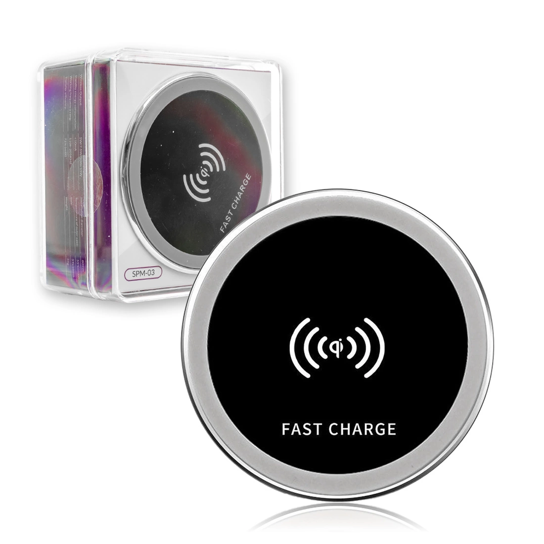 - Rychlé nabíjení: Díky pokročilé indukční technologii poskytuje SPM-03 stabilní připojení a efektivní nabíjení kompatibilních smartphonů, chytrých hodinek a dalších gadgetů