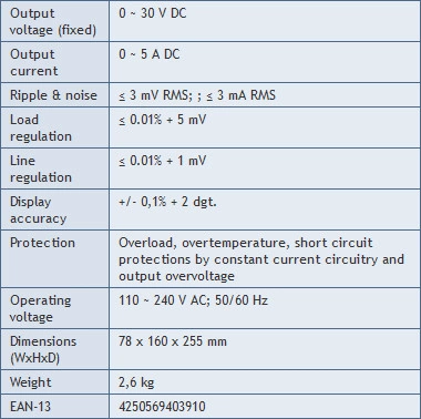 Zasilacz laboratoryjny impulsowy 1-30 V DC, 0-5A