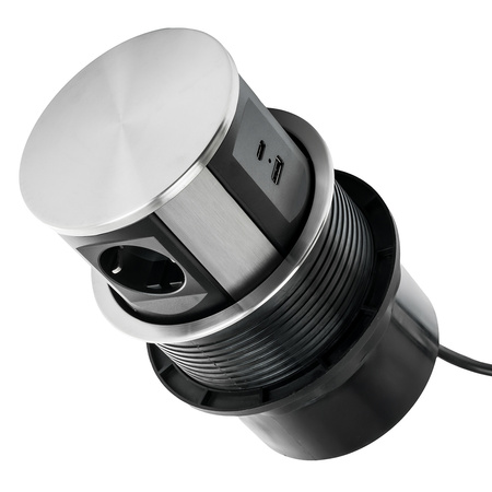 Nábytková zásuvka s povrchovou úpravou z broušeného kovu je kombinací elegance a odolnosti, která skvěle doplní moderní interiéry. Takové provedení dodává zásuvce luxusní vzhled a zároveň zajišťuje odolnost proti poškrábání a jinému mechanickému poškození. Ideální do kuchyní, kanceláří nebo obývacích pokojů, kde je důležitá funkčnost i design.