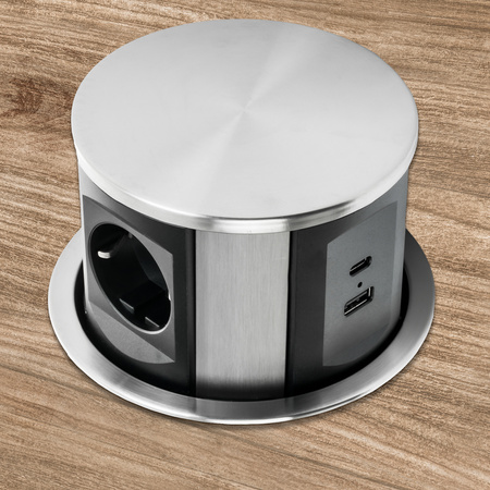 Otevíratelná pultová zásuvka je ideálním řešením pro ty, kteří oceňují eleganci a funkčnost. Díky promyšlenému designu je zásuvka diskrétně skrytá v pracovní desce, což umožňuje zachovat estetiku a pořádek na pracovišti nebo v kuchyni. Klapka se jednoduše zvedne a umožní snadný přístup k napájení. Po skončení práce lze zásuvku uzavřít, čímž je chráněna před prachem a poškozením.