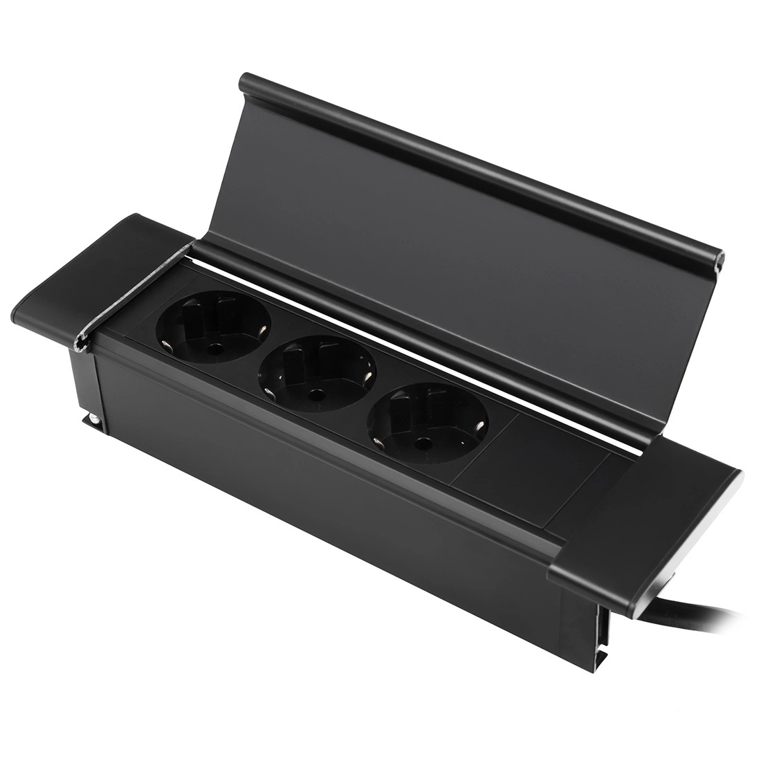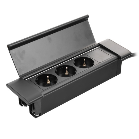 Hledáte dokonalé řešení, které spojí eleganci a funkčnost ve vaší kanceláři, showroomu, konferenční místnosti nebo domácnosti? Otevíratelná nábytková zásuvka Spacetronik je univerzální výrobek, který splní každou výzvu. Tři zásuvky schuko budou dokonale fungovat jako napájecí lišta na desce stolu.