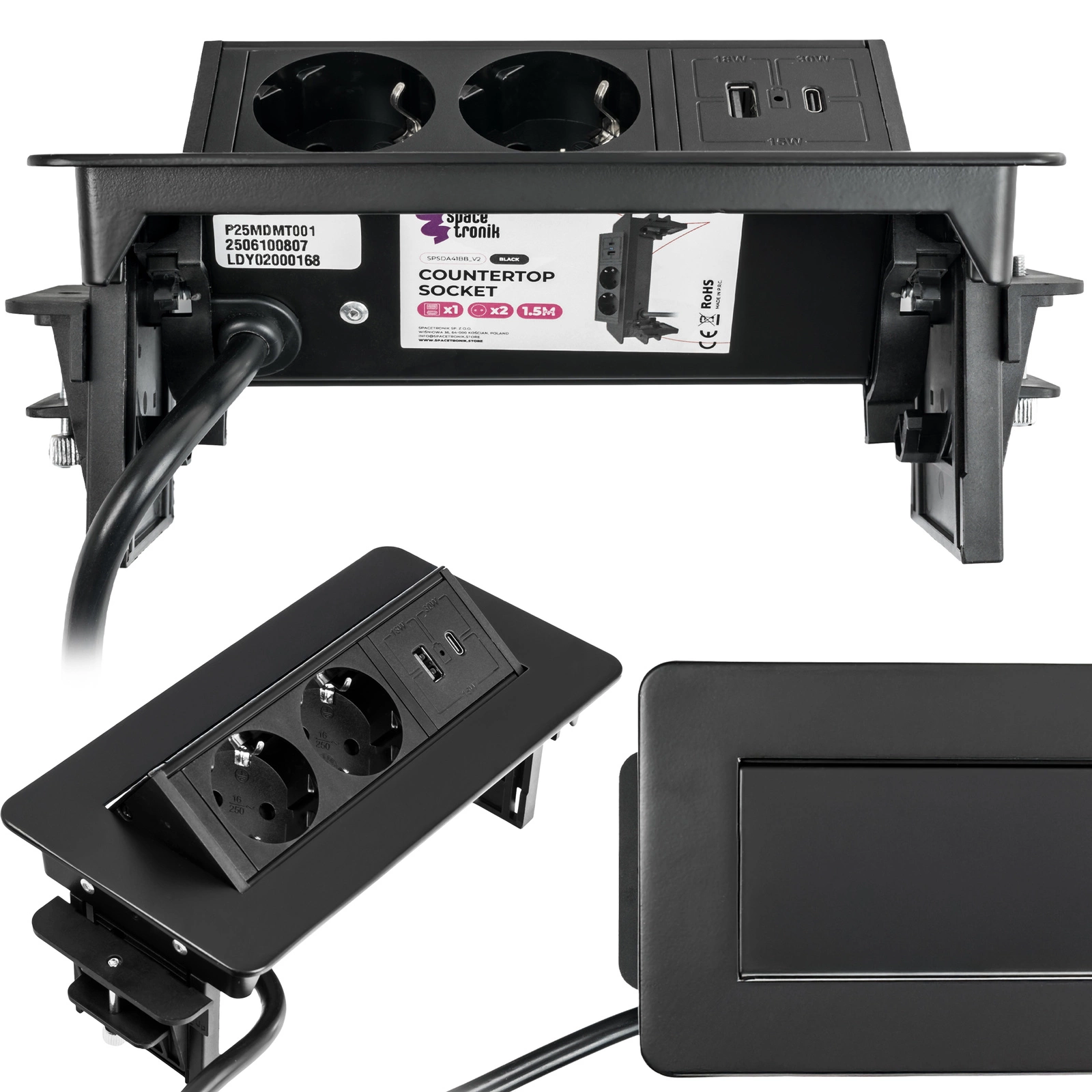 Spacetronik SPS-F33B V2 Otevíratelná pultová zásuvka černá ? Funkčnost a elegance