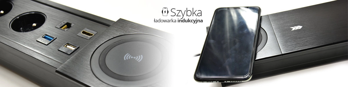 Ładowarka indukcyjna, bezprzewodowe ładowanie, nowoczesna ładowarka, ładowarka meblowa