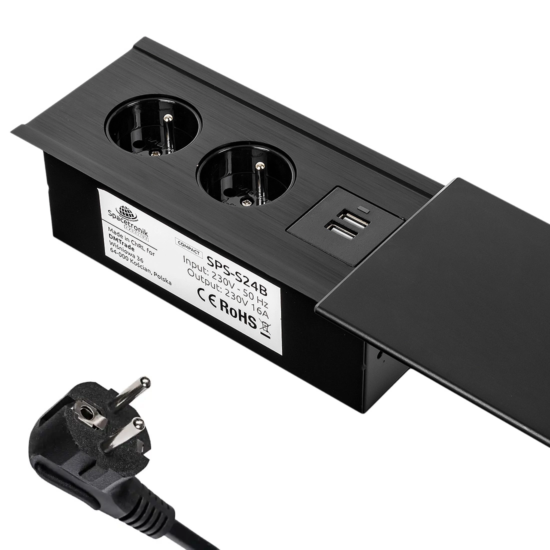 Gniazdo chowane w blat Spacetronik SPS-S24B COMPACT posiada podwójną ładowarkę USB, dzięki której naładujesz swój telefon, tablet i inne urządzenia.