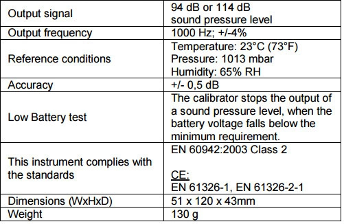 • Kalibrátor hladiny zvuku určený pro extrémní podmínky, vysoké nadmořské výšky, má dva kalibrační stupně 94 a 114 dB.