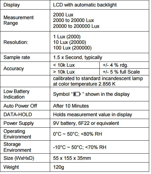 - Pomiar natężenia światła do 200 tys. luksów