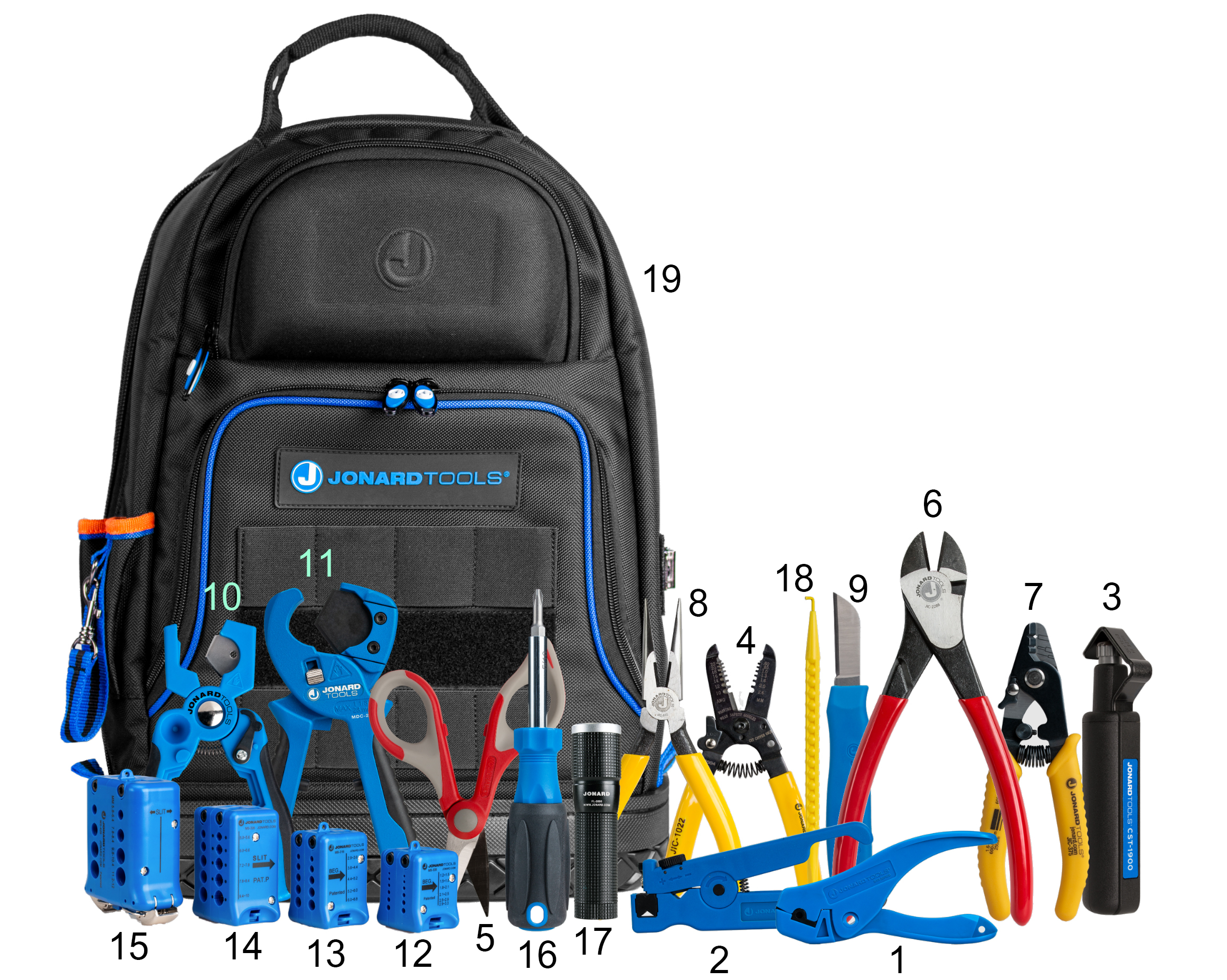 Zestaw narzędzi w Plecaku JONARD TOOLS TK-179B (19 Elementów)