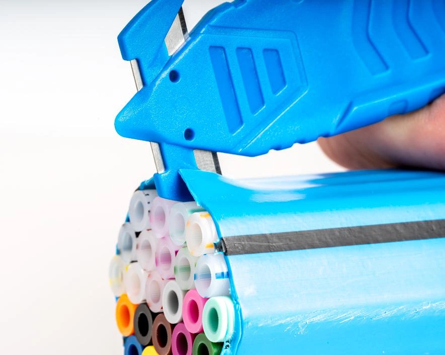 Zaprojektowane z wąskimi głowicami zabezpieczającymi i ostrzami ze stali wysokowęglowej, to narzędzie do rozcinania osłon mikrorurek, jest idealne do rozcinania osłon z wiązek mikrorurek w celu uzyskania dostępu do mikrorurek wewnętrznych.