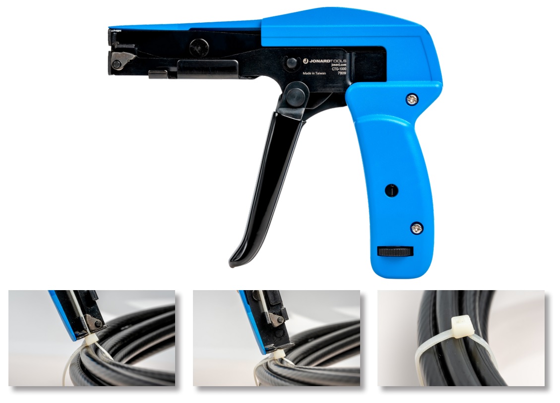 Ergonomiczny pistolet do zaciskania i cięcia opasek kablowych Jonard CTG-1000