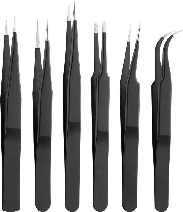 Zestaw precyzyjnych pęset wykonanych ze stali nierdzewnej