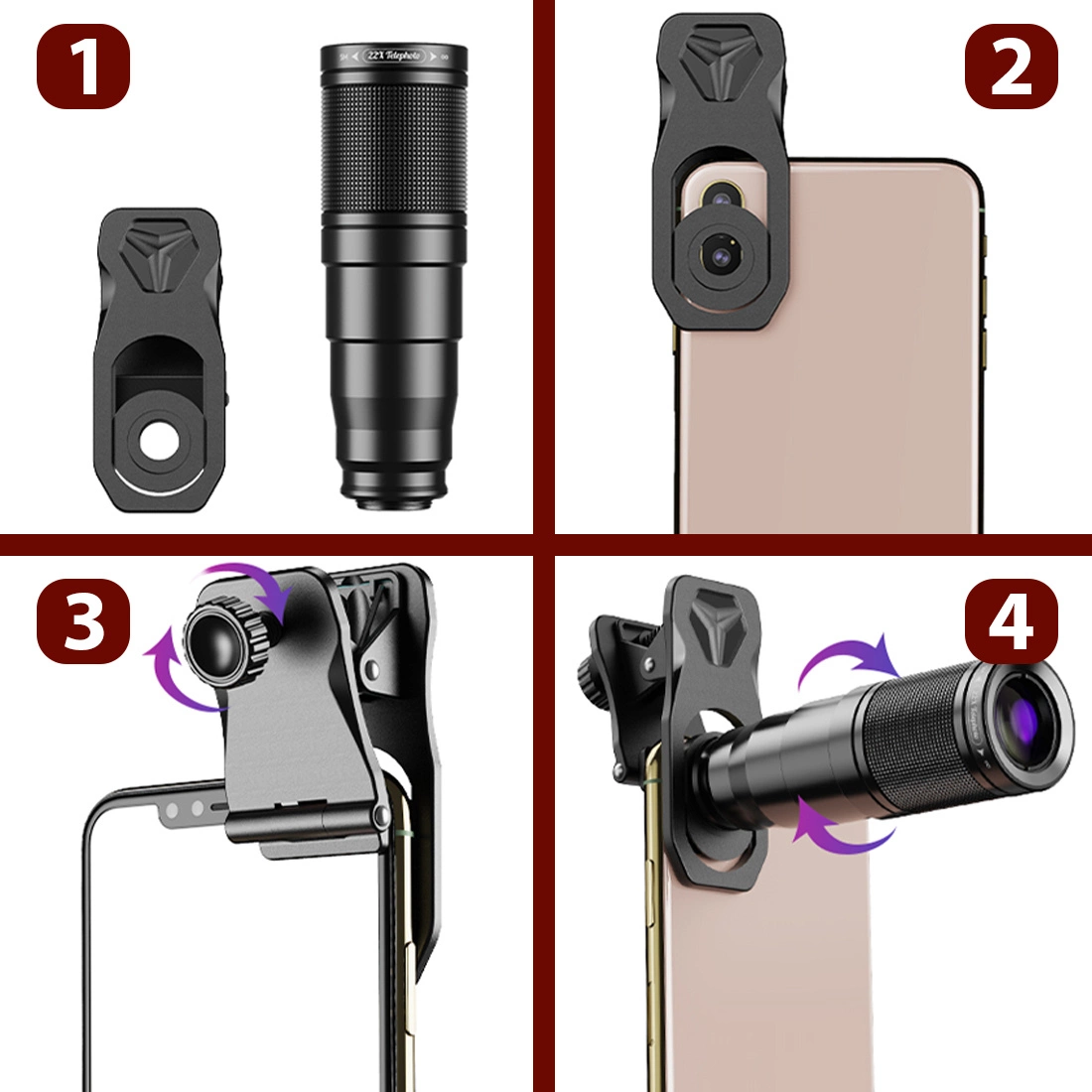 - Univerzální klip: Klip pro snadné připevnění objektivu k různým modelům smartphonů pro zajištění stability a kompatibility.