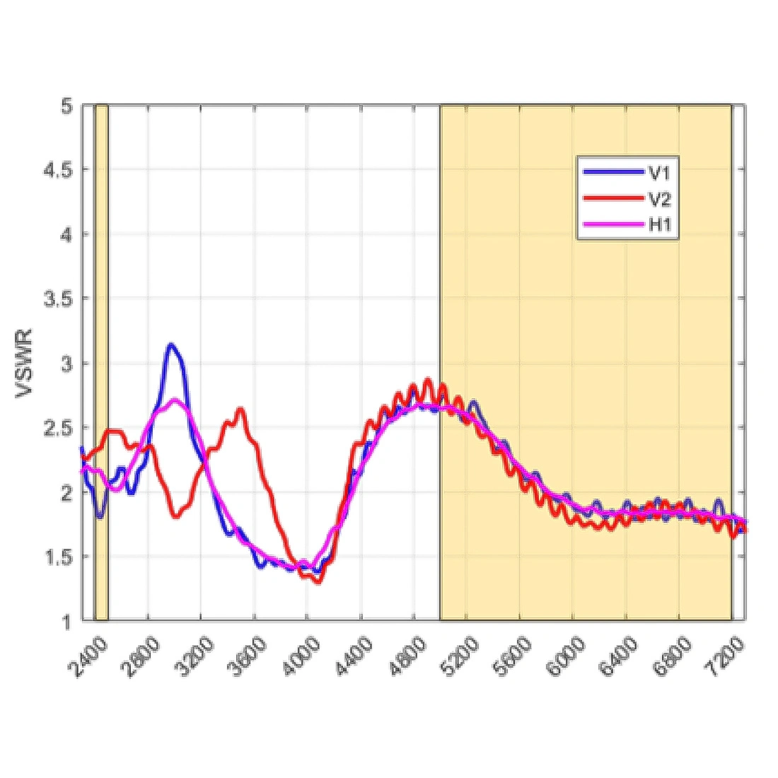 8.8 dBi to szczytowe wzmocnienie we wszystkich pasmach od 860 do 960 MHz