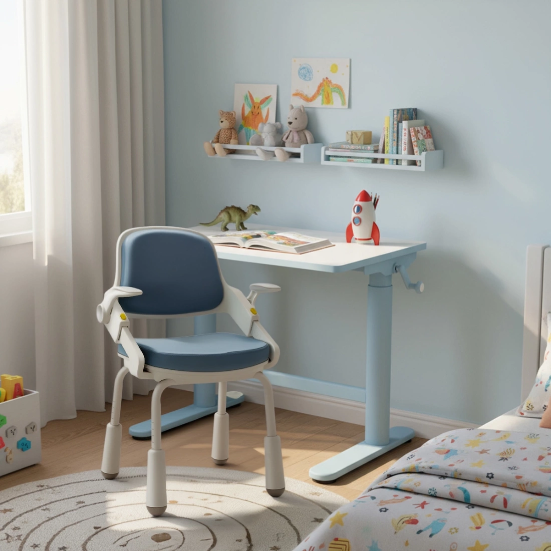 Ein höhenverstellbarer Schreibtisch, der mit Ihrem Kind wächst